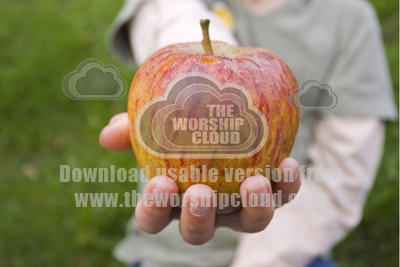• apple lfruit arge red hand arm outstretched young girl holding o
