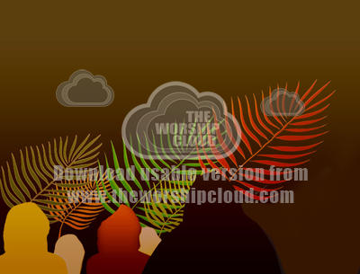 Jesus being welcomed by the waving palm branches. However, in the foreground is a dark figure waving a blood red palm.