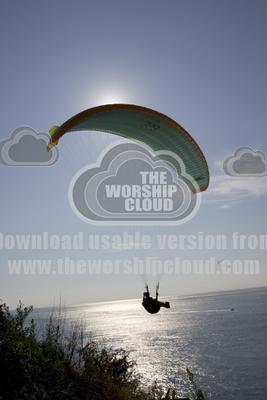 Paraglider silhouetted against evening sun over the Bassin d'Arcachon, south of Bordeaux, France