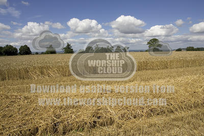 Partly harvested wheat field, Chipping Campden, Cotswolds, Britain