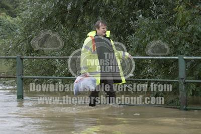 • Baling water from flooded riverside cottages near Mythe Bridge T