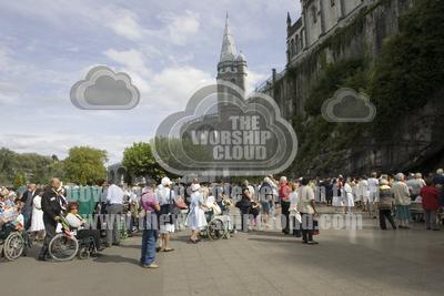 home | resources | pilgrims waiting to visit the sacred grotto, lourdes, france