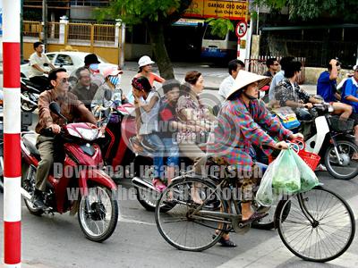 Hanoi city, Vietnam. Waiting for the lights to change. Complete with red and white pole. We had the impression that obeying traffic lights was optional in many places.
