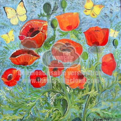A group of poppies and butterflys captured in acrylic paints by Audrey Hogan