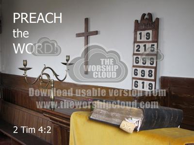 Chapel Pulpit, bible and hymnboard - an image of preaching. In what other ways is the word preached today?