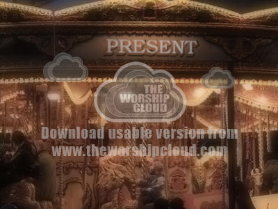 Carousel in mid darkness, with small, anonymous child and word 'present'