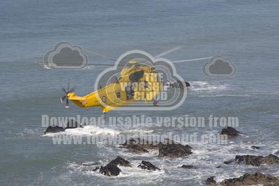 • RAF helicopter air sea rescue Widemouth Bay Bude Cornwall UK
