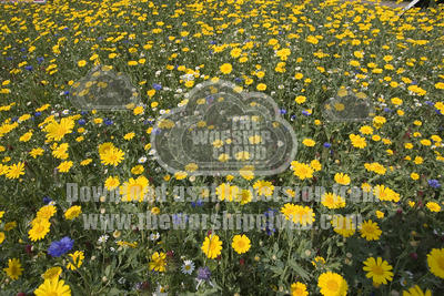 Recreated Upland Hay Meadow flowers demonstration on English Heritage site, Royal Agricultural Show, Stonleigh, UK