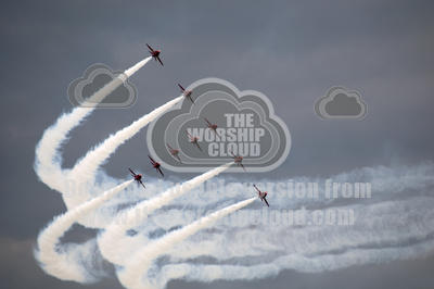 The Red Arrows flying in tight formation, trusting deeply in each others skills amazing the crowds