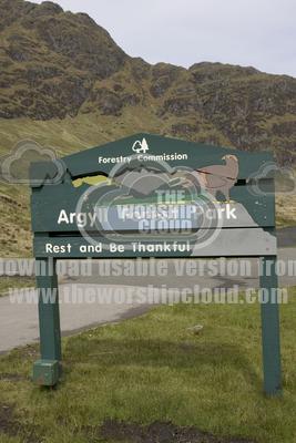 Rest and be thankful signboard Argyll Forest Park, Scotland