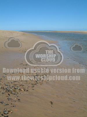 The river Aln estuary, lovely beach, blue sky.