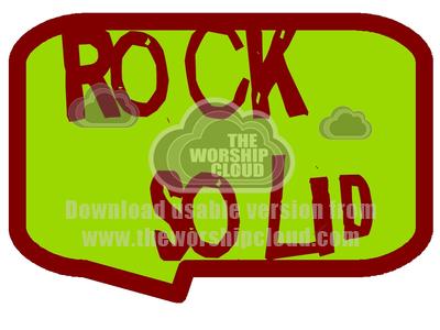 An image that simply says ROCK SOLID in funky writing on a oosely speech bubble shaped background.