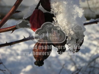 Macro shot of rose hips in the snow December 2010 by Audrey Hogan