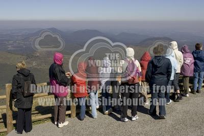home | resources | school children viewing volcanos on summit of puy de dome, centr
