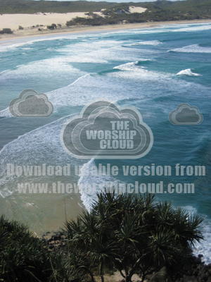 This is a picture looking down from a hill onto the waves of sea washing onto the beach on Fraizer Island Australia