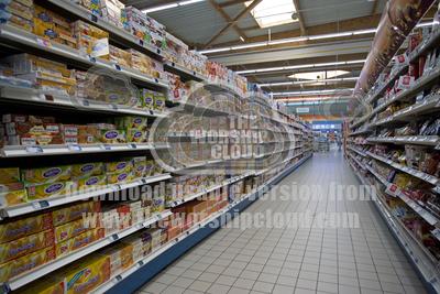 • Shelves full of dairy produce E Leclerc superstore Le Havre Fran