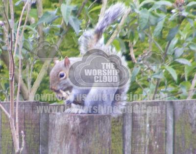 Grey Squerrel sitting on the fence in our garden. Captured on digital camera by Bill Hogan.