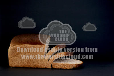 An image of a cut loaf of bread on a dark background. Can be used for Harvest or added into a Harvest PowerPoint.