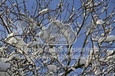 Nature's work of art, snow pure white against black branches with a deep blue sky