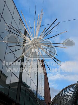 A bright electronic star Christmas decoration in Bristol city centre 2023