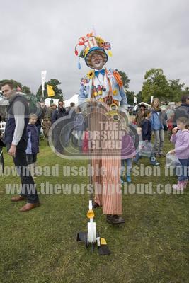• Tall colourful clown entertaining children Moreton Show UK