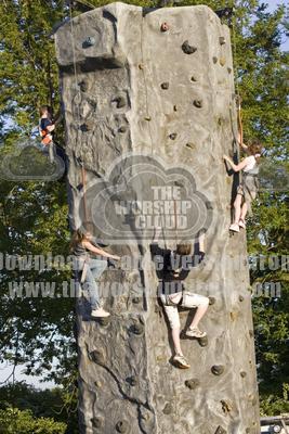 • Teenagers on outdoor climibing wall, Cotswold Olimpicks, Chippin