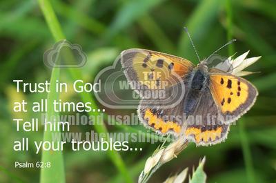 Small Copper Butterfly and text of Psalm 62:8 Powerpoint or prayer image