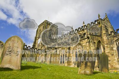The sandstone coloured church at Thirsk on a sunny Spring day