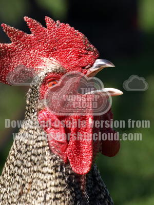 Close up of a cockerel crowing loudly in the sunshine