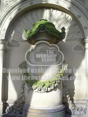 A statue inside an arch of a church