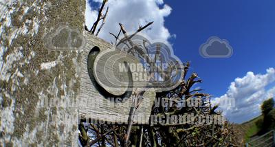 Fish eye shot of bridle path sign