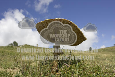 Underside of mushroom in mountains scenery in Pyrenees south of Lourdes, southern France
