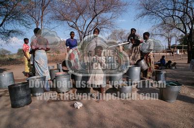 Women and children at new water pump Monkey Bay Mangochi District, Malawi