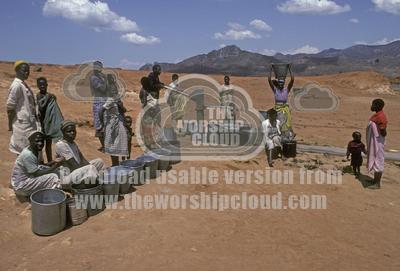 • Woman aid worker teaching African woman sewing WURCS Project Mon