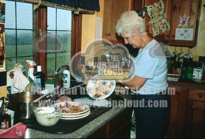 Sonia washing up at kitchen sink, Cotswolds, UK