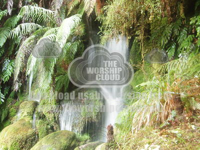 mini waterfall and shrubbery