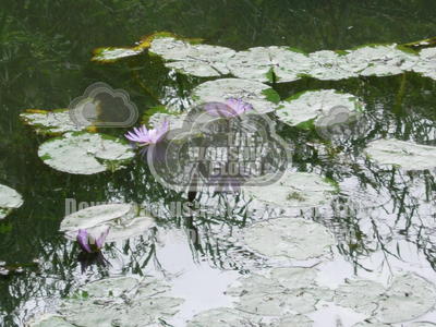 Picture of Waterlillies in a pond with follage reflected in the water.