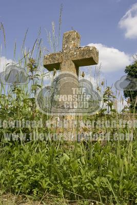 Wildflowers around cross in churchyard Toddington, Cotswolds, UK
