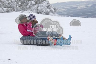 home | resources | woman and child sledging in deep snow cleeve hill cotswolds uk
