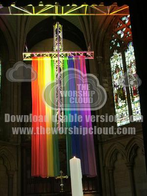 Leeds St Georges Church. The Cross was decorated with the colours and hoisted up during the service.