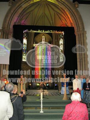Leeds St Georges Church. The Cross was decorated with the colours and hoisted up during the service.