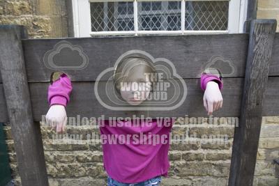 home | resources | young girl in wooden medieval stocks bourton on the water uk