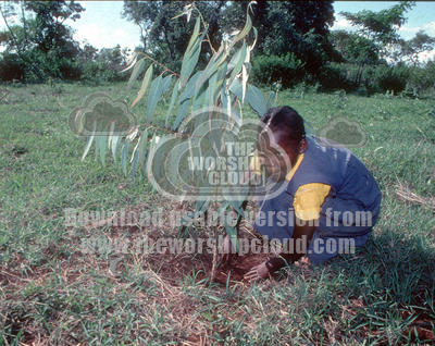 Young Kenya girl planting tree Bellerive Energy Project Ruiru, Kenya