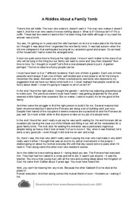 Joseph remembers an old riddle and ponders how it might apply to the tomb he gave for Jesus to be buried within.