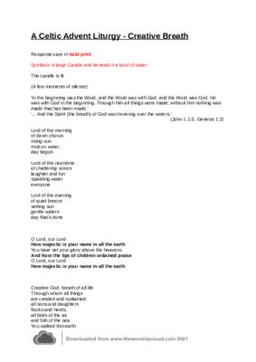 An Advent Service with a distinctive Celtic feel on the theme of Creative Breath.