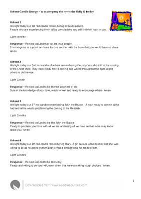 Advent Candle Liturgy – to accompany the hymn the Holly & the Ivy