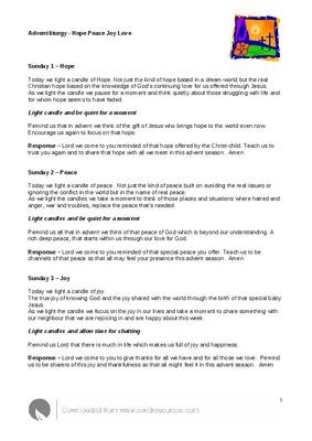 Liturgy to accompany the lighting of the advent ring based on Hope, Peace, Joy & Love