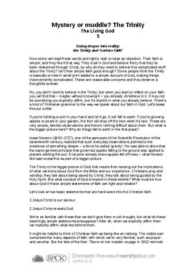 Now some will read these words and rightly wish to raise an objection. Their faith is simple; and they like it that way. They trust in God and believe firmly that they’ve been redeemed through Christ, so why do they need to believe this complicated stuff about the Trinity? Isn’t their simple faith good enough? Some people think the Trinity is basically a note in small print added to a simple account of God, making things inconveniently complicated. These are reasonable concerns and they deserve a thoughtful answer...