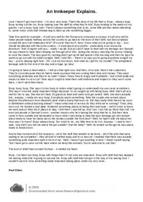 Look I haven’t got much time – I’m very, very busy. That’s the story of my life that is. Busy – always busy. Busy sorting out the inn. Busy making sure the staff do what they’re told. Busy tending to the needs of my guests. I am a busy, busy man. There’s always something else to do, some little job that needs attending to, some minor crisis that’s threatening to blow up into something bigger.