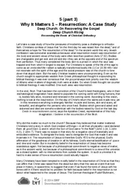 5 (part 3) Why It Matters 1 – Resurrection: A Case Study